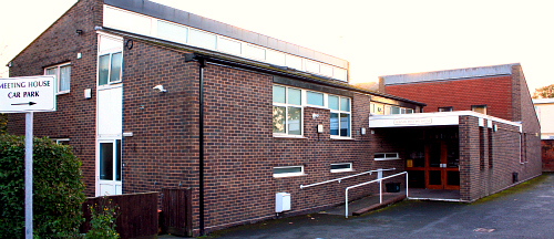 Friends’ Meeting House, 8b Summerfield Road (off Bath Road), Chapel Ash, Wolverhampton. The Meeting House is not visible from Summerfield Road as it is set back behind the Consulting Rooms of the doctors at number 8 Summerfield Road. You cross the doctors car park to reach the Meeting House and its car park.