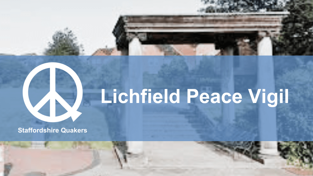 Lichfield Quaker Meeting invites you to join us at one of our regular Peace Vigils, held at The Friary Remains opposite the former library building. You can join us for all or part of the hour. You are welcome to bring a portable chair. All are welcome.