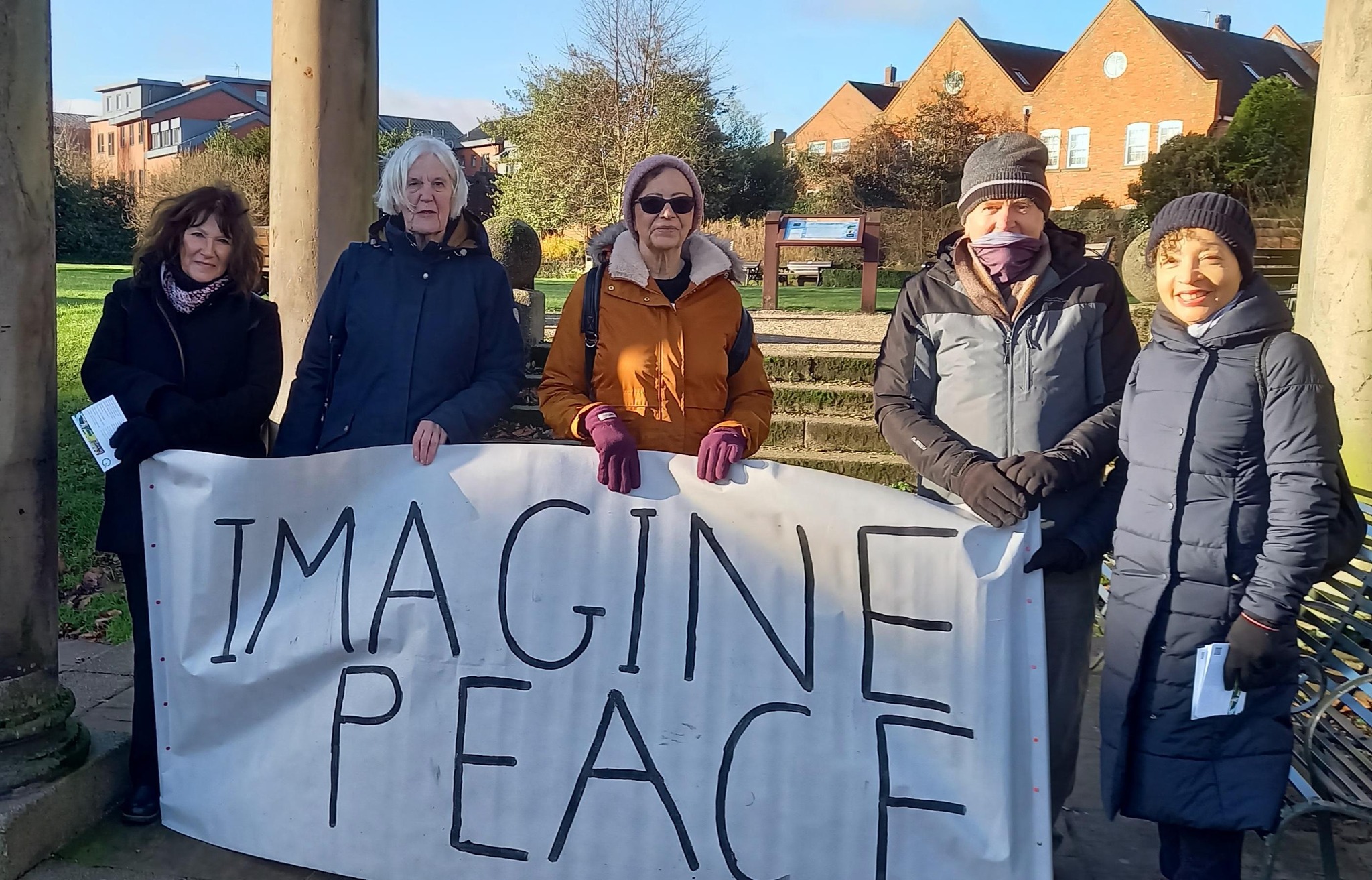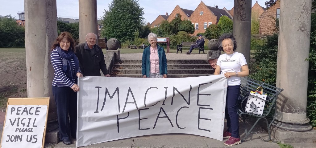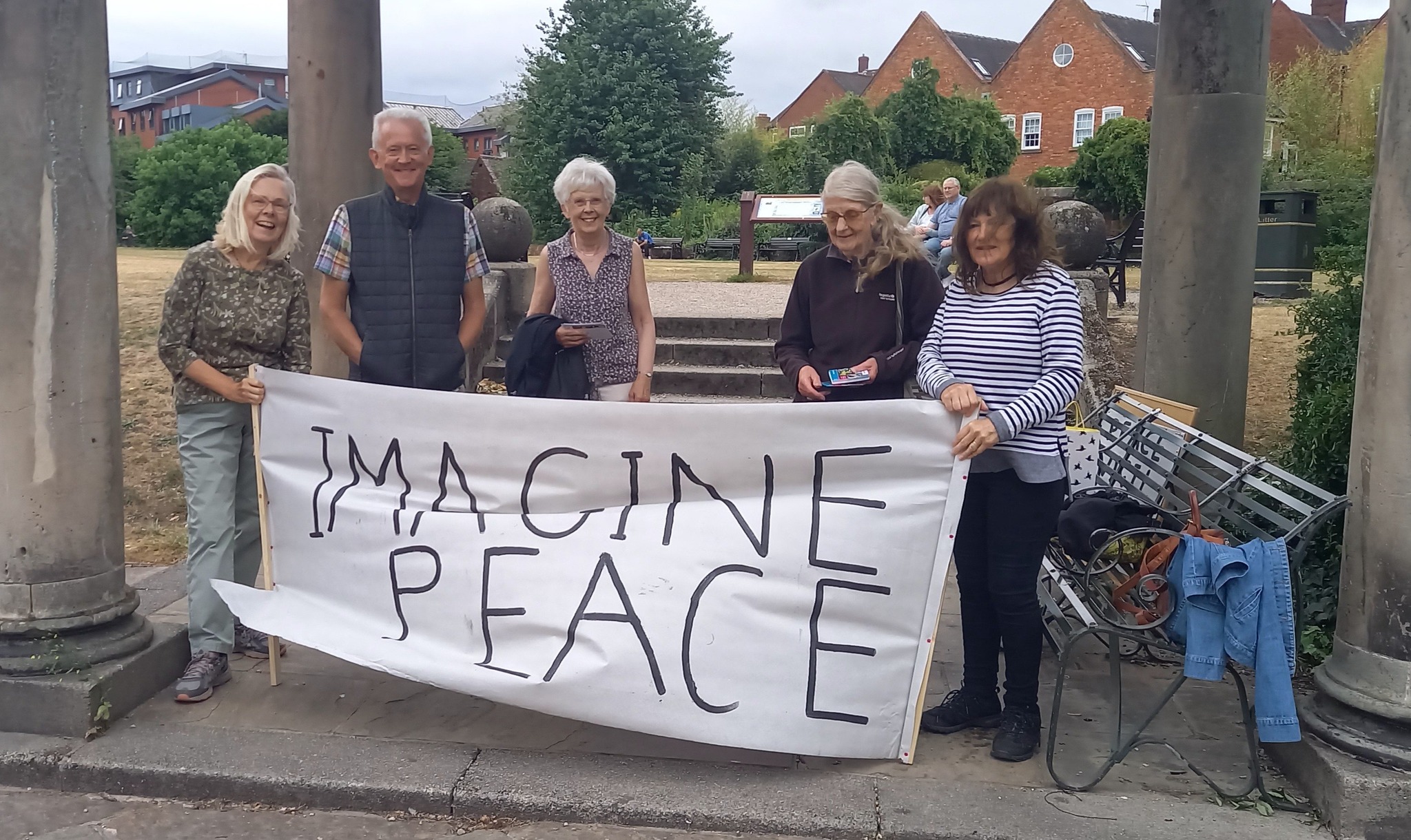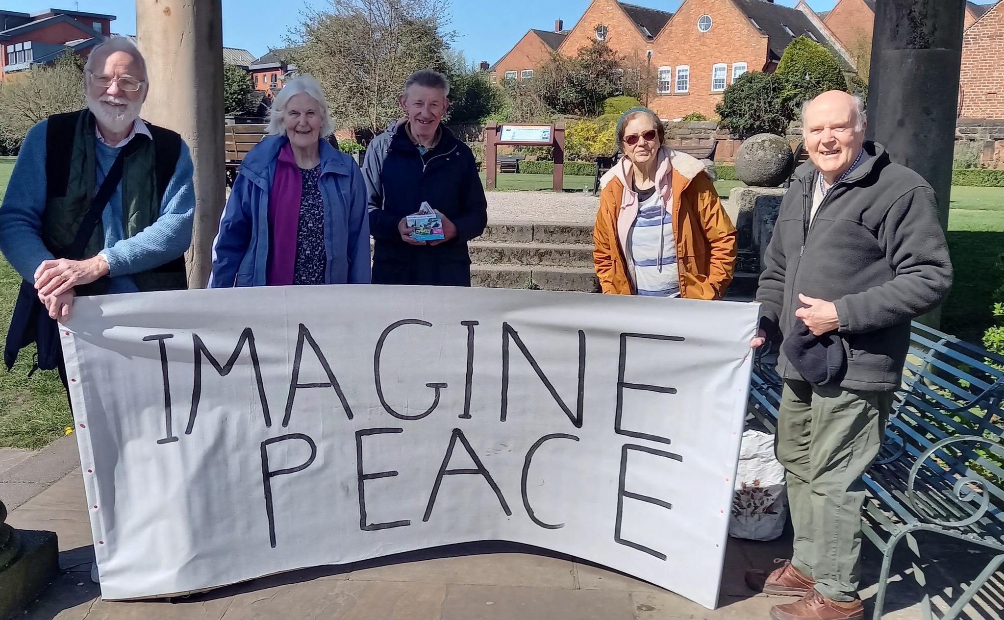 A spokesperson for Lichfield Quakers said, “A single sign stating ‘imagine peace’ will be on display at the event. We ask people not to bring banners, placards or badges, and not to wear items of support for any particular group.”