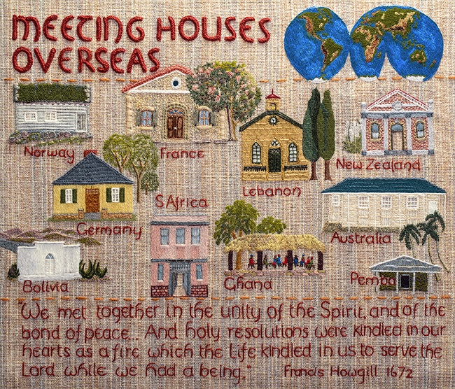 Panel from the Quaker Tapestry entitled Meeting Houses Overseas