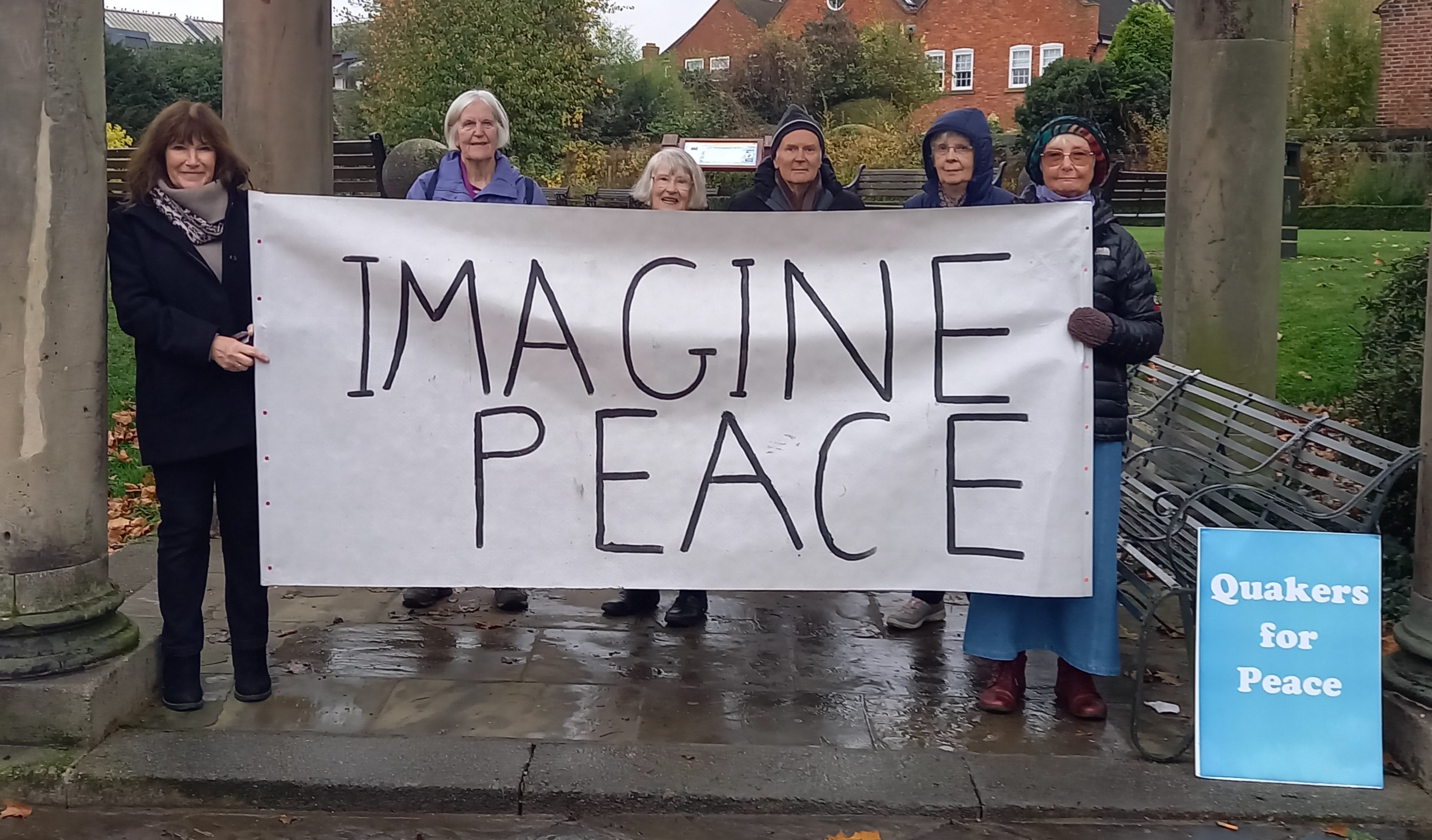 On Saturday 2nd November 2024, Lichfield Quakers held a vigil for peace at The Friary Remains opposite the former library building from 11:00am to 12:00pm. Despite the gloom of the November weather, we were supported by friendly car horns and inquisitive and smiling bypassers.