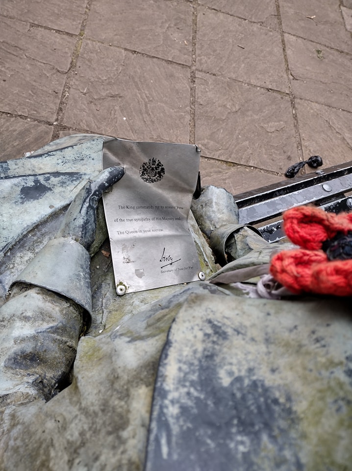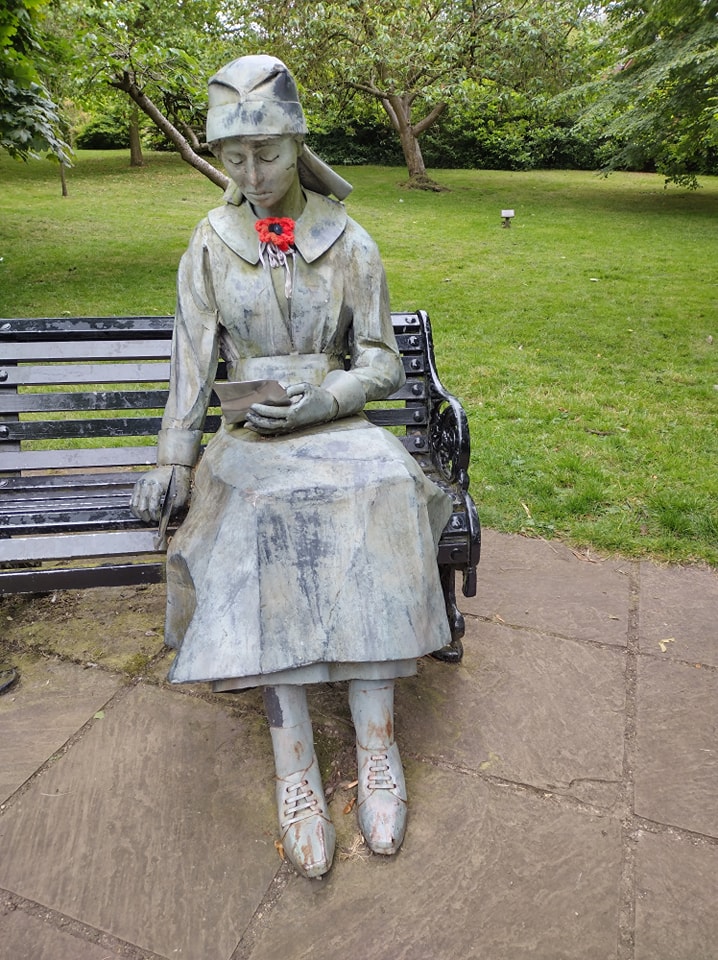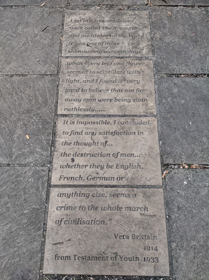 The plaque next to the ‘Lady in the park’ sculpture features a quote from Vera Brittain’s ‘Testament of Youth’.